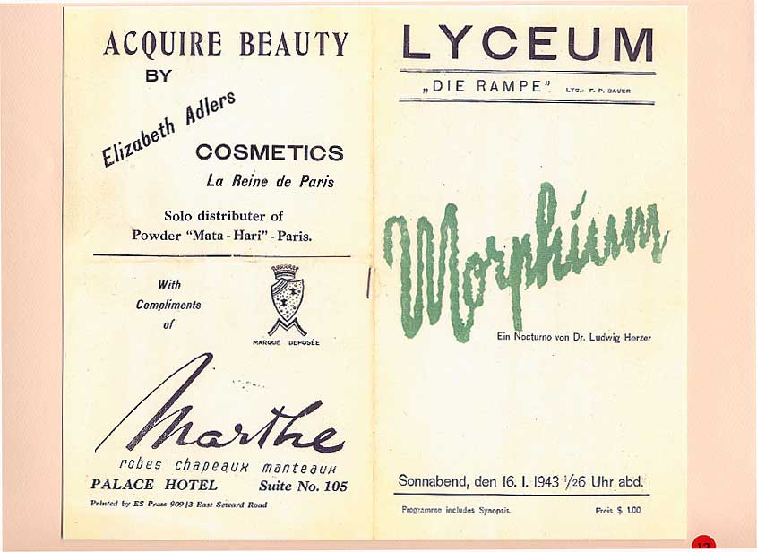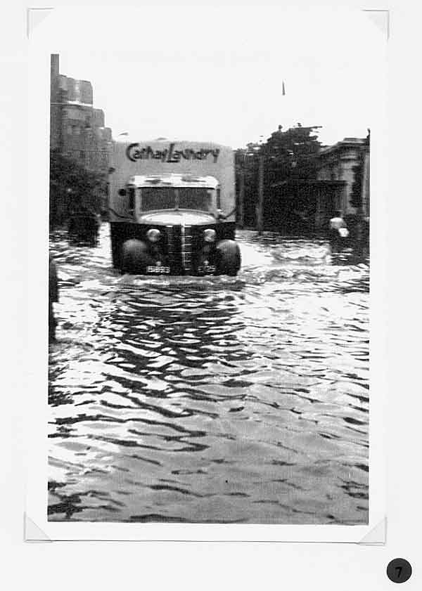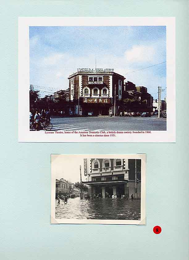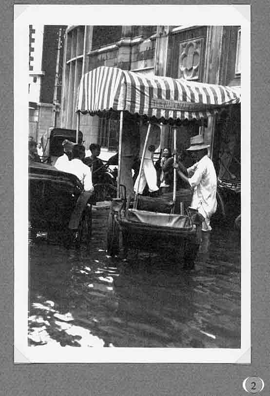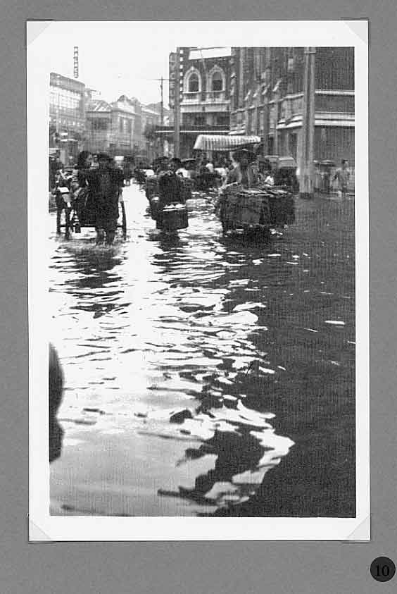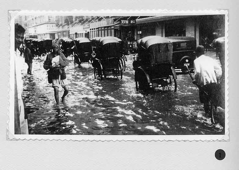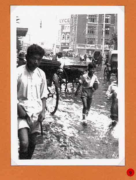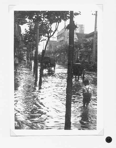 A report in the Bullelin-Igud Yolzei Sin by Sonny Isaacs, dated September-October 2002, recalling the typhoons in Shanghai, prompted yours truly to look for photographs hidden among my Hongkew memorabilia depicting this kind of devastating meteorological event. Floods, typhoons, and tides are the greatest threats from nature to Shanghai as it sits on the tip of the Yangtze Delta. When the periodic, typhoon, also referred to as a tropical cyclone, hits Shanghai, usually between July and September, the Whangpoo River overflows and the streets become a flowing river over two or three feet deep. The photograph in figure one, taken in 1939, shows a flooded street in Hongkew. During the days in the Jewish Ghetto, water came gushing into dwellings of the low, lane-type houses, and if this was not enough the poor physical condition of Jewish refugees as the war continued became a potential for contracting one of many enteric type diseases prevalent at the time. Typhoons, the way we Shanghailanders remember them, knew no boundaries and caused devastating affects in all three separate municipal entities; the International Settlement, the French Concession and Greater Shanghai. The following photographs where taken in the early 30‘s prior to the Sino Japanese War. They were photographed in the French Concession, which started approximately one mile west of the Bun4 and south of Nangking Road. Figures two thru seven show the popular Route Cardinal Mercier flooded by a typhoon. It was also the street where the Lyceum Theater was located (see figure eight thru eleven). Figures 12 thru 13 illustrate a program of a comedy performance given in January 1943 at the Lyceum Theater. It was only a couple of months later when the Japanese Proclamation came into affect restricting Jews that arrived in the late 30‘s to a designated area. The theater then became off limits to this group of Jewish refugees. In figures 14 thru 15 we see a view of Ave. Joffre flooded by another typhoon. Figure 16 show the same condition at Ave. du Roi Albert after a typhoon. Although we in the United States also experience natural disasters, including torrential rain and tornados, Shanghailanders today are in better physical condition and in a more secure environment to protect themselves from such impending and unexpected occurrences. |