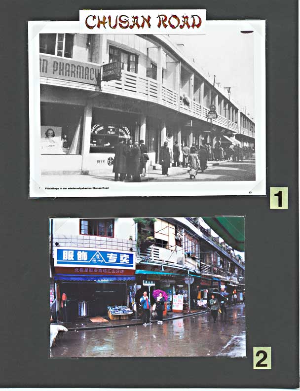 The talent and endurance of Jewish refugees that Hitler could not take away from refugees fleeing to Shanghai as he did with their precious heirlooms, helped rebuild and transform the ruins left from the 1937 Sino-Japanese War into one flourishing store after another. In a short time, enterprising refugees from Central Europe revitalized Chusan Road, which became the commercial hub of "Little Vienna", with Viennese restaurants, bakeries, and a variety of stores. In figures one and two, we see a photograph of Chusan Road taken during the Hongkew era (courtesy, Horst Eisfelder), and again fifty years later (Photo ) respectively.
