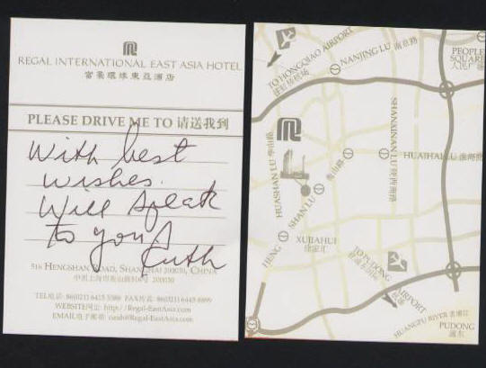 During a walk on the famous Shanghai Bund with its European architecture from the 20’s and 30’s, Ruth Spiegler, 71 explains to her daughter, Barbara that this area along the waterfront was off-limits to her mother and grandparents during the war and to all other refugees that immigrated in the late 30’s.