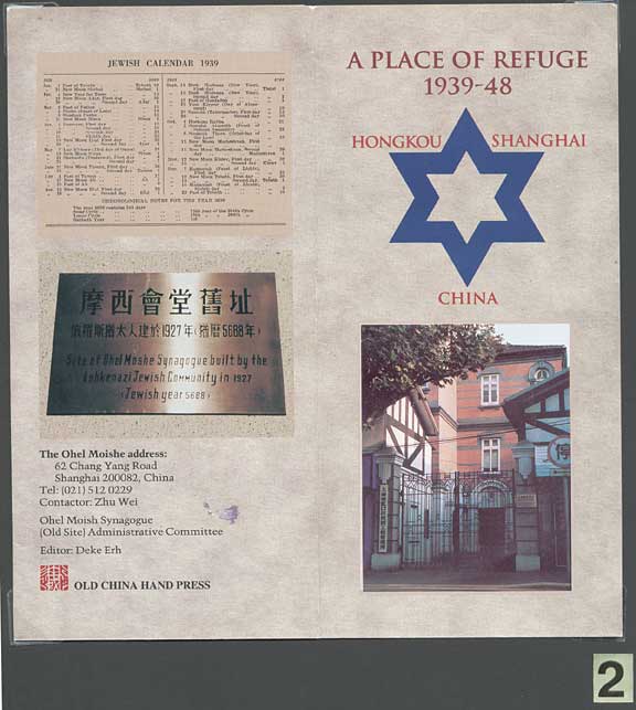 A more solid Jewish education was provided by the Talmud Torah, established in December 1939 with the help of Rabbi Ashkenazi and a committee of his Russian and Sephardi supporters. The former Talmud Torah that was located at 62 Ward Road is illustrated on a current pamphlet for tourists in figure two. The photos illustrated in figures 2a and 2b were shot on my return visit with my wife to Shanghai. They show a classroom at the old Talmud Torah School with a Mezuzah still attached to the door- post, and an outside view from one of the windows on the second floor. Also shown on a photo is Mr. Wang Fa Liang of the Ohel Moshe Synagogue (now a museum) Administrative Department.
